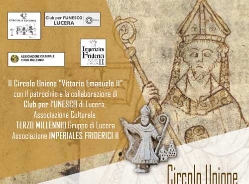 La conferenza, organizzata dallo storico sodalizio di Piazza Duomo, si avvale del patrocinio e della collaborazione del Club per l’Unesco di Lucera, dell’Associazione Culturale “Terzo Millennio” e dell’Associazione “Imperiales Friderici II”. I lavori, introdotti da Christopher Williams, ordinario di Lingua e traduzione inglese al Dipartimento di Giurisprudenza dell’Università degli Studi di Foggia, saranno coordinati da Enrico Follieri, ordinario di Diritto amministrativo al Dipartimento di Giurisprudenza dell’Università degli Studi di Foggia.