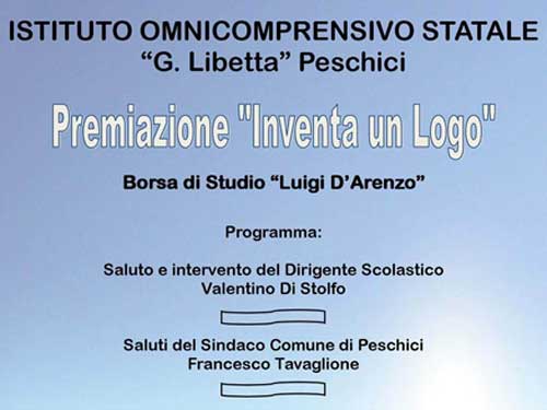 Martedì 19, Atrio Scuola Primaria, ore 18: premiazione del concorso “Inventa un logo” (foto 1 sotto; ndr), a cura dell’Istituto Omnicomprensivo “G. Libetta” oggetto del logo - Sarà assegnata al vincitore, su venti partecipanti, una borsa di studio (importo da stabilire) intitolata, e fortemente voluta dalla famiglia, al compianto Luigi D’Arenzo, scomparso l’anno scorso per un male incurabile che lo ha stroncato in giovane età. Interverranno: il dirigente scolastico Valentino Di Stolfo, il sindaco Francesco Tavaglione, il collega di Luigi e grande amico Matteo Elia Biscotti, il pittore Matteo Fiorentino, l’Orchestra “Libetta” con una esibizione.