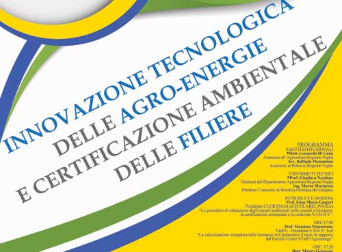 Clicca per Ingrandire Si è tenuto il 28 aprile alle 16, nella Sala Consiglio della Palazzina Uffici Fiera di Foggia, nell’ambito della 67ª edizione della Fiera internazionale Agricoltura e Zootecnia, l’incontro promosso da Consorzio “Eden” e Club Emas-Ecolabel Puglia, sul tema “Innovazione tecnologica delle agro-energie e certificazione ambientale delle filiere”. Presenti alla tavola rotonda per il confronto le più alte cariche istituzionali regionali di riferimento non solo per il settore agricolo ma anche per l’intero territorio di Capitanata, come concreto sostegno al percorso portato avanti dal Consorzio Eden, che da anni si occupa, fra le molteplici attività e progetti, proprio di valorizzazione energetica delle biomasse e degli scarti-sottoprodotti delle filiere agricole.