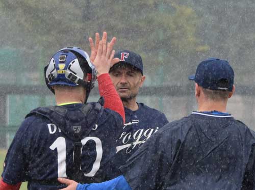 Nella fase finale del match Foggia amministra nuovamente il vantaggio, con un punteggio rassicurante a favore. Ma all’ultimo inning, con una pioggia molto più consistente e al limite della praticabilità, i laziali hanno messo a segno tre punti, con Araujo ‘rilievo’ sul monte al posto di un ottimo D’Amico. Nuovo cambio sul ‘monte’ e chiusura della gara affidata al veterano Bove che non sbaglia e scaccia gli avversari chiudendo la partita senza dover completare il proprio gioco d’attacco finale. Una piccola nota riguardo la chiusura della partita, con tre punti di Anzio arrivati in condizioni meteorologiche al limite e la palla diventata incontrollabile per chi difendeva. Probabilmente, sul 6-1, all’ultimo inning e con una pioggia fortissima, la gara avrebbe visto la sua naturale conclusione in anticipo.
