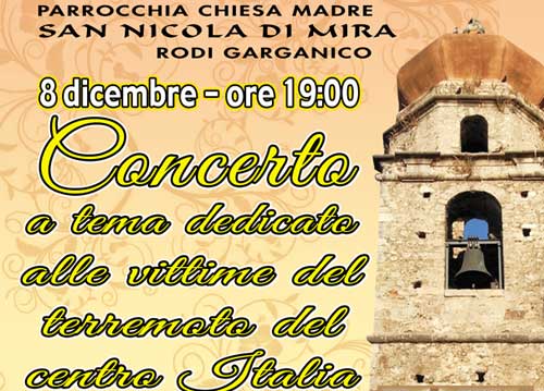 ore 19, Concerto Natalizio dedicato alle vittime del terremoto del Centro Italia organizzato dal Maestro Andrea Vescera