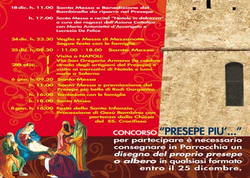 ore 11, Santa Messa e Premiazione del Presepe Più bello di Rodi Garganico
