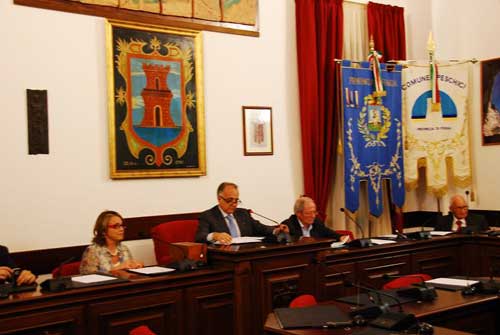 Clicca per Ingrandire Lunghissima giornata “della memoria” per Peschici, ricordando i fatti tragici dello scorso 24 luglio. Numerosi gli eventi che si sono susseguiti nel primo anniversario di una delle giornate più drammatiche mai vissute a Peschici. Nel pomeriggio, alle 18.30 nella sala consiliare del Comune di Peschici, si è tenuto un Consiglio Provinciale straordinario presieduto dal presidente della Provincia di Foggia Antonio Pepe (foto del titolo, alla sua destra la vicepresidente Billa Consiglio), in cui è stata ribadita la volontà di aiutare concretamente la popolazione peschiciana (ne riferiamo in precedente post in categoria PRIMA PAGINA del 24 u.s.).