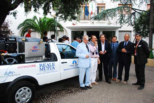 Al termine del Consiglio c’è stata la consegna di un “pick-up” all’assessore all’Ambiente del Comune di Peschici, Michelino Vecera (nella foto 1 sotto, insieme con i benefattori) da parte di imprenditori e politici locali. Il mezzo farà da sostegno e primo intervento per i piccoli incendi, e affiancherà l’unità principale arrivata a Peschici proprio due giorni fa (vedi nostro articolo in categoria PRIMA PAGINA del 22 u.s.).