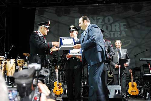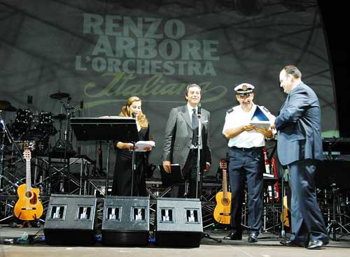 Infine, sul piazzale dell’ex campo sportivo comunale, alle 22, è iniziato il gran concerto di Renzo Arbore e dell’Orchestra italiana, preceduto dalla consegna di targhe al valore ai rappresentanti delle forze dell’ordine, per il loro contributo nel coordinamento e nell’impiego di uomini al servizio della collettività, durante le concitate operazioni di salvataggio dei civili (foto 5-6-7-8, rispettivamente i rappresentanti della Polizia Municipale di Peschici, dei Carabinieri, della Capitaneria di Porto, della Guardia di Finanza premiati dal sindaco Domenico Vecera). Tra i premiati, anche una di quelle famiglie che lo scorso luglio erano qui in vacanza perdendo ogni cosa ma ugualmente è voluta tornare su questi luoghi, tra questa gente, che tanto aiuto le ha dato.