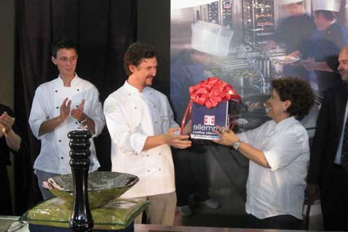 Noto a tutti i buongustai del Gargano, oggi ha allargato il suo raggio d’azione provocatoria. Merito del proprietario, Domenico Cilenti, eletto a giugno “Miglior chef emergente del Sud” con siciliani e campani a ruota nel concorso di Napoli “Cooking for Wine” (foto 1 sotto, la premiazione; ndr). La fantasia addentellata come congegni di uno stesso meccanismo alla creatività. Non solo, gli alimenti più “bistrattati” legati in unica sinfonia a invenzioni da “haute cuisine”. Un esempio? “Gamberi dell'Adriatico con cicoriella selvatica e sale alla vaniglia con pane bruschettato in cartoccio”! Già cresce l’acquolina in bocca. Un altro? “Zuppettina di cipolla giovane con gaspacho di pomodori e insalatina dell'orto” (fra l’altro sono i piatti con cui ha vinto in quel di Napoli).