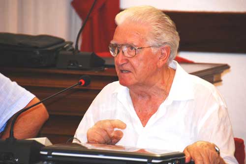 Clicca per Ingrandire Finalmente Peschici si accorge di uno dei suoi uomini più illustri, tributando il dovuto “omaggio” allo storico Giuseppe Martella - da tutti conosciuto come “don Peppino Martella” - organizzato nella Sala consiliare domenica 3 agosto dall’assessore alla Cultura, Leonardo Di Miscia (foto 1 sotto; ndr) del Comune di Peschici, rappresentato dal sindaco Domenico Vecera (foto 2).