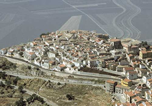 Grotta Paglicci è un tesoro d’immensa ricchezza. E’ posto esattamente a metà strada fra due ambienti assai diversi: in basso la piana infuocata del Tavoliere (foto 1 sotto, in una bella veduta aerea di Rignano; ndr), che per lunghi periodi ha dovuto offrire steppe o praterie poco arborate, e in alto la montagna coi suoi dirupi rocciosi, che dal primo gradone calcareo (100-150 metri sul livello del mare), raggiunge in breve tempo i 590-600 metri di altezza. Macchie e piccoli boschi, tuttavia, dovevano intervallarsi, soprattutto nei periodi più temperati e umidi, lungo le vallate e i rivoli di ruscelli e fiumi che si addensavano in pianura.